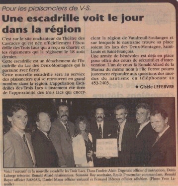 L’Escadrille Des Trois Lacs, fondée le 10 juin 1995, l’Escadrille Des Trois Lacs se spécialise dans la formation nautique sous toutes ses formes. Depuis sa fondation, l’Escadrille a formé des centaines de plaisanciers afin de rendre la pratique de la navigation plus sécuritaire.